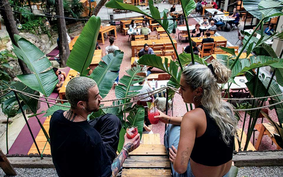 punters at Six Dogs cafe-bar-cultural centre in Monastiraki, Athens ...